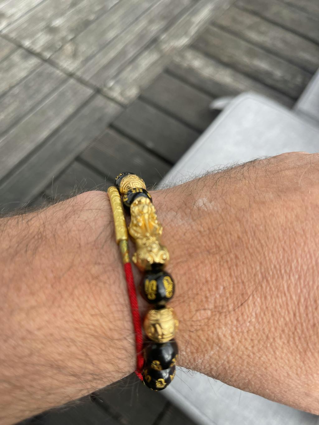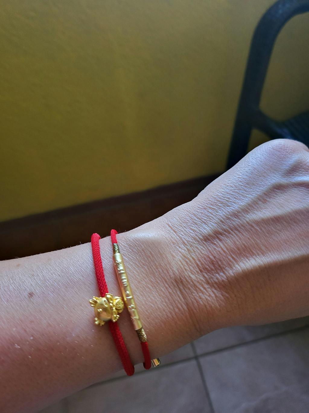 In Buddhistischer Tradition ist ein Armband aus rotem Strick (auch bekannt als Red String Bracelet) das Symbol für Lebenskraft. Es ist gesegnet mit einem kraftvollen Mantra um den Träger vor Unglück zu schützen. Das Tragen des Armbandes aus rotem Strick dient deshalb auch als Glücksbringer.